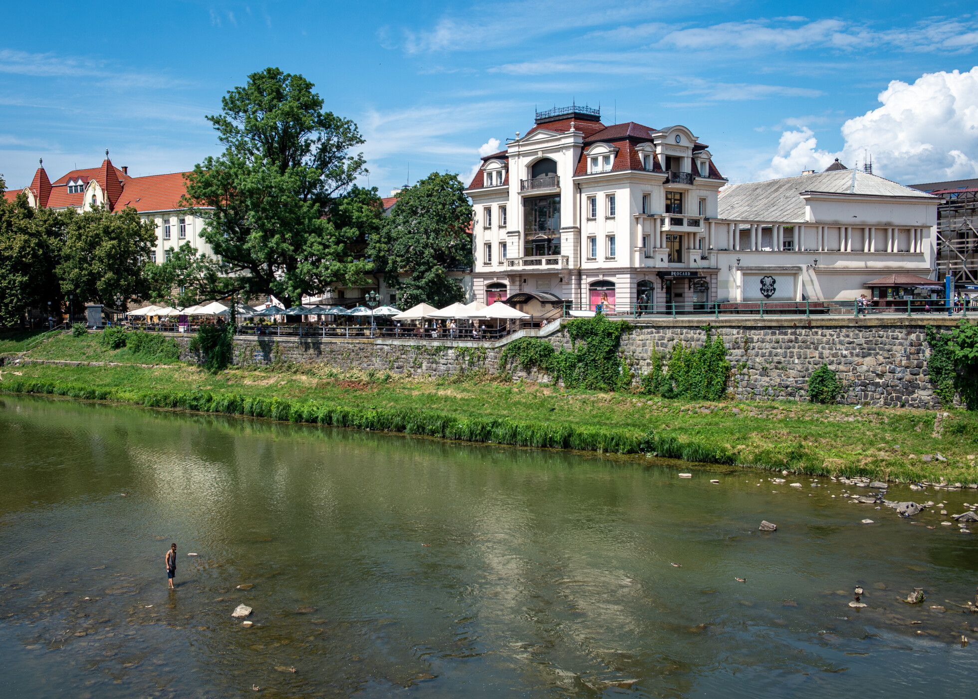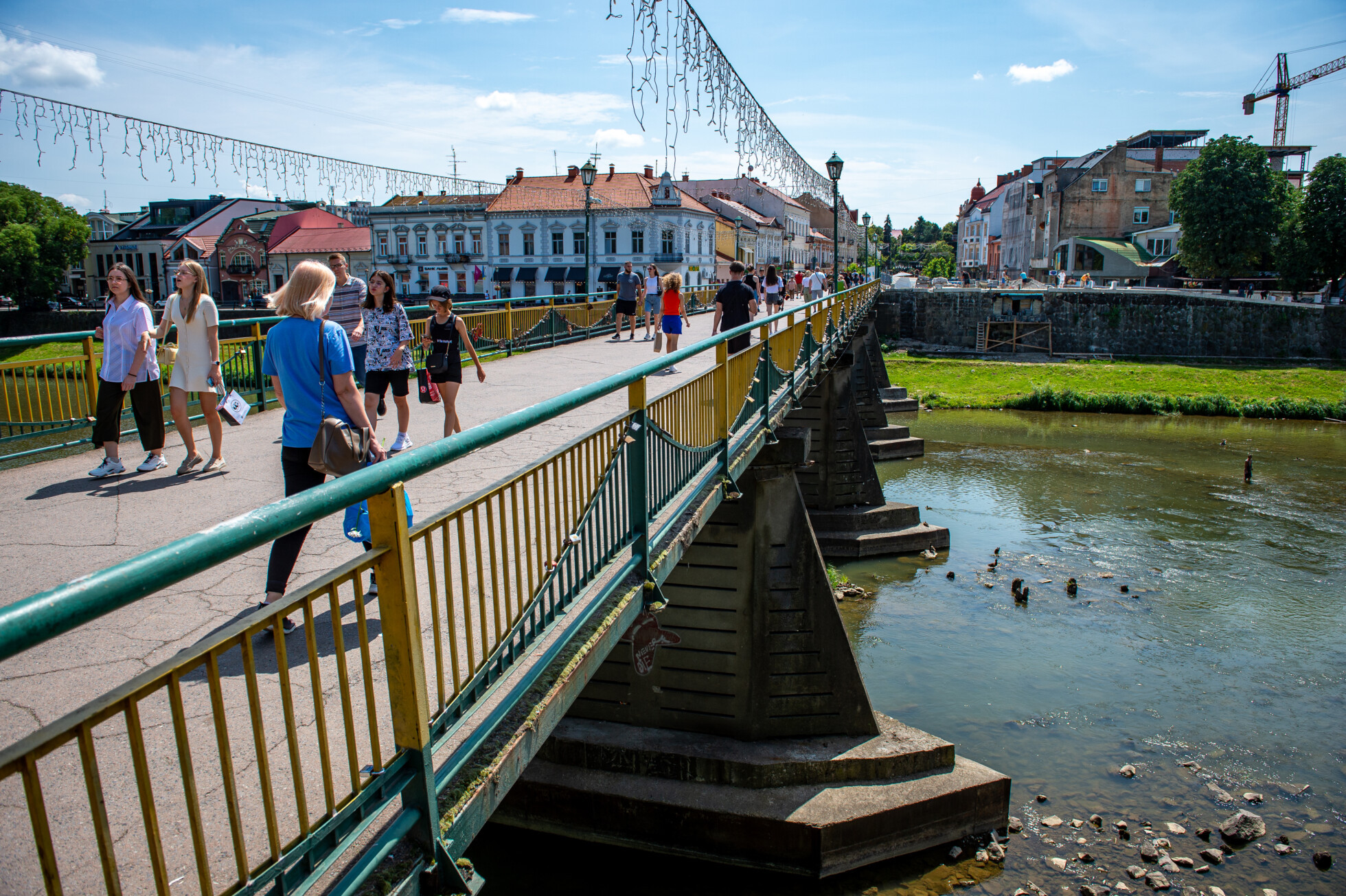 Körbenézünk: körülöttünk szinte semmi sem emlékeztet az ötszáz napja tartó háborúra a városban. Ungvár belvárosa pezseg a júliusi délutánban. Az Ung lustán folyik a medrében, szinte alig látszik, olyan alacsony a vízállás, a közepén madarak portyáznak. A folyó mellett húzódó, fákkal szegélyezett sétányon rengetegen járnak-kelnek, fagyit nyalva, zenét hallgatva. Ady jut eszünkbe: