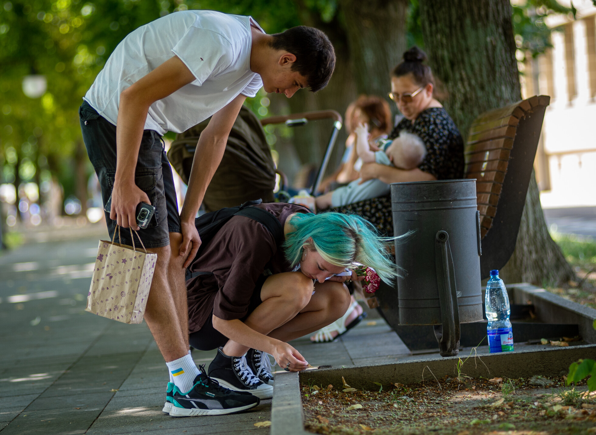 A sétányon élénkül a forgalom, sok kisgyermekes apukát és fiatal férfit is látni. Egy magas, szőke srácon „I am Ukrainian” feliratú póló van, vet ránk egy lopott pillantást, ahogy elhalad mellettünk, majd a telefonjába mélyed. Magyarországon és Szlovákiában is sokan gondolják úgy, hogy fiatal férfiként nem jó ómen csak úgy flangálni az ukrajnai városok utcáin, mert a sorozótisztek berántják az embert a fekete autóba, és irány a front. Csakhogy ez nem egészen így van – erről januárban már írtunk.