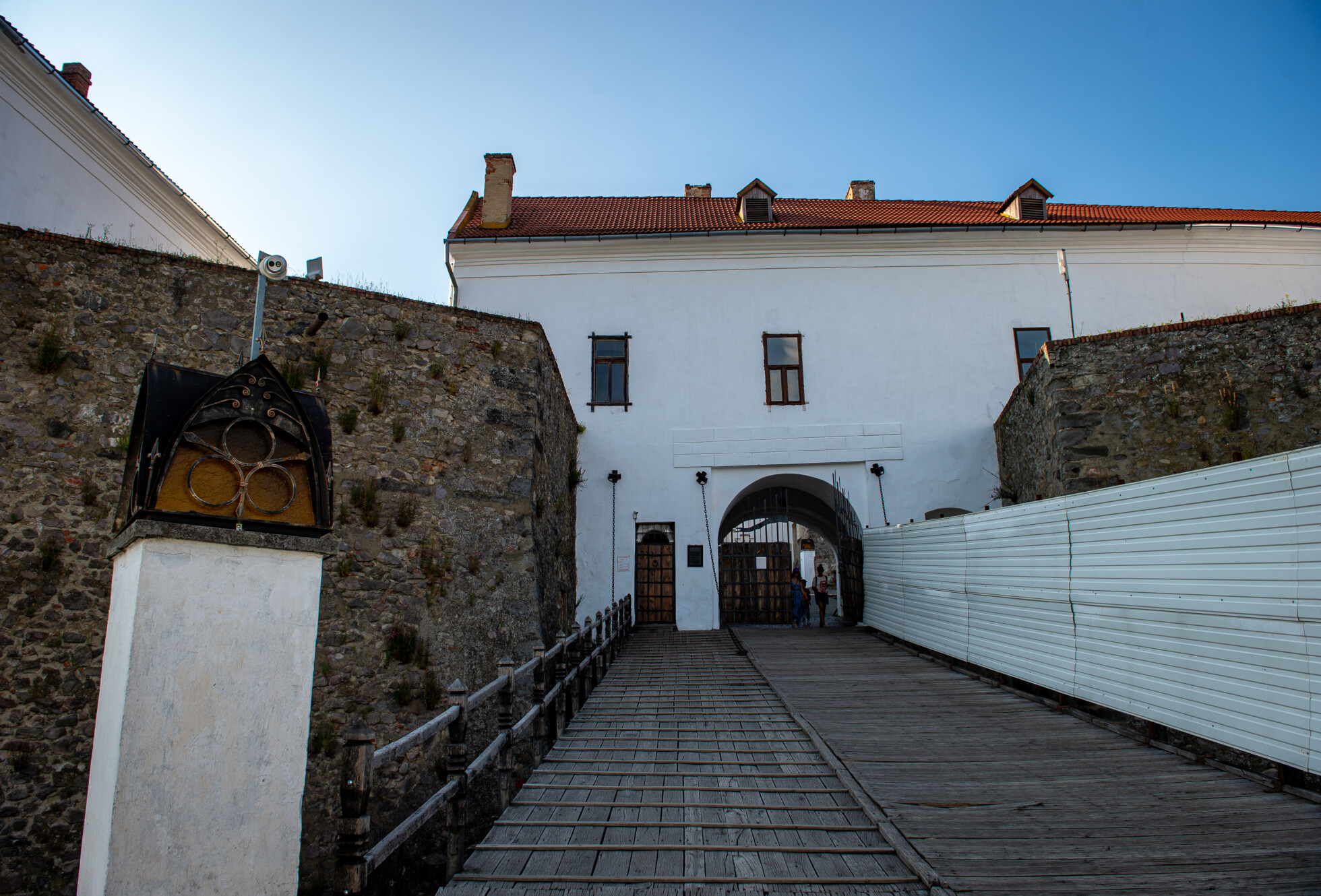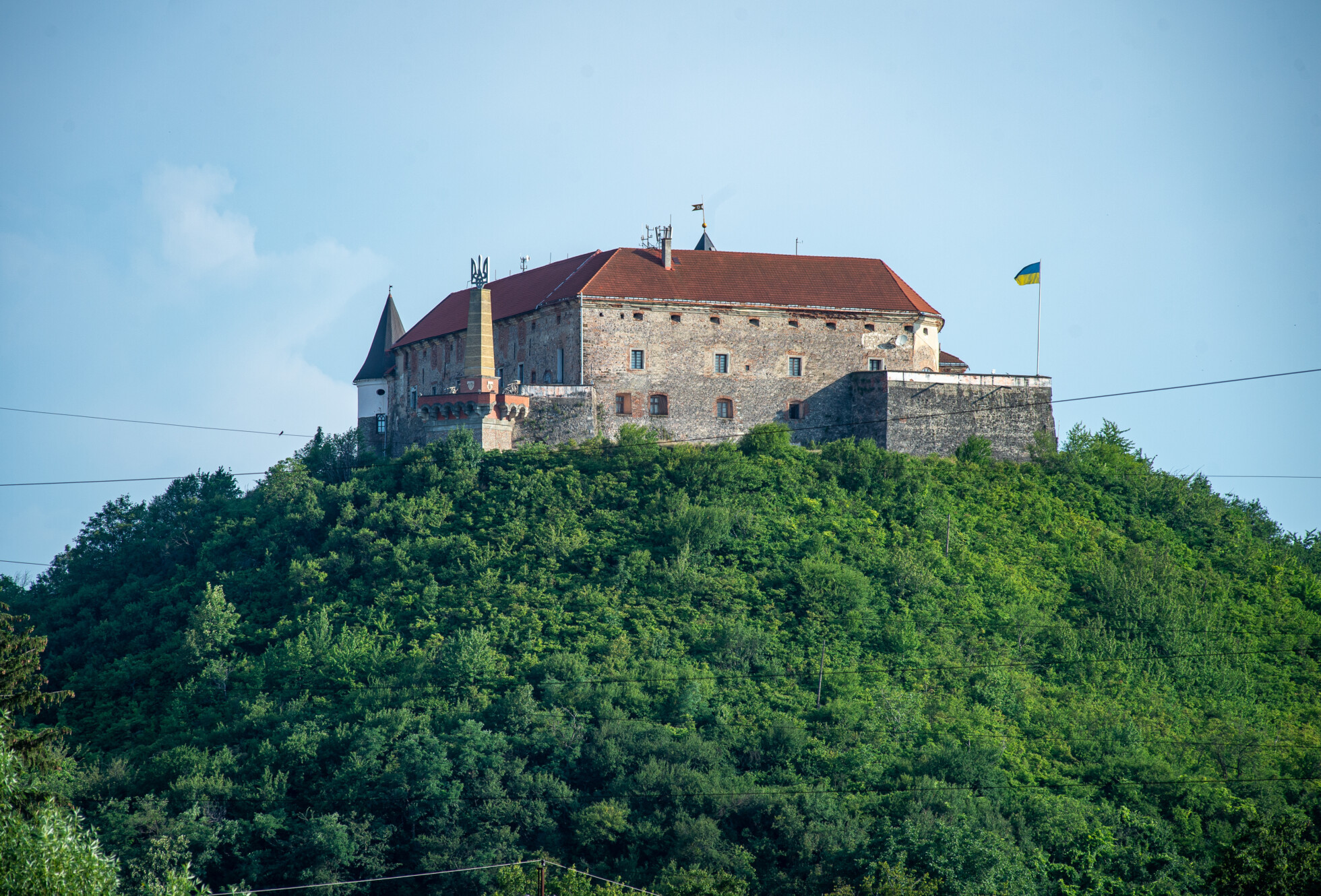 Kimennénk megnézni az ukrán háromágú szigonyt is a bástyákra, oda, ahonnan nemrég Baloháék ledöntötték a turulszobrot. Az oda vezető kijáratok azonban le vannak zárva, és máshonnan sem élvezhetjük a panorámát – a városra néző kilátást kerítéssel takarták el. Ennek biztonsági okai vannak: Munkácson több laktanya és katonai objektum van, melyeket innen látni lehetne. „Dolgozik az orosz titkosszolgálat” – mondja Mihók.