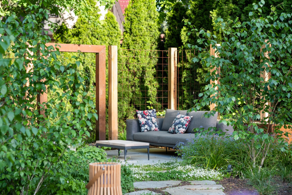 A teraszt fedő fák és a különböző pergolák az árnyék mellett magánteret is kialakítanak. A tájkertész sövényt, kőfalat vagy vadcserjét ajánl a terasz köré. Bieliková hozzáteszi, hogy a formára vágott szegélynövény sem feltétlenül rossz választás. Ezeket azonban jól kell kombinálni más elemekkel.