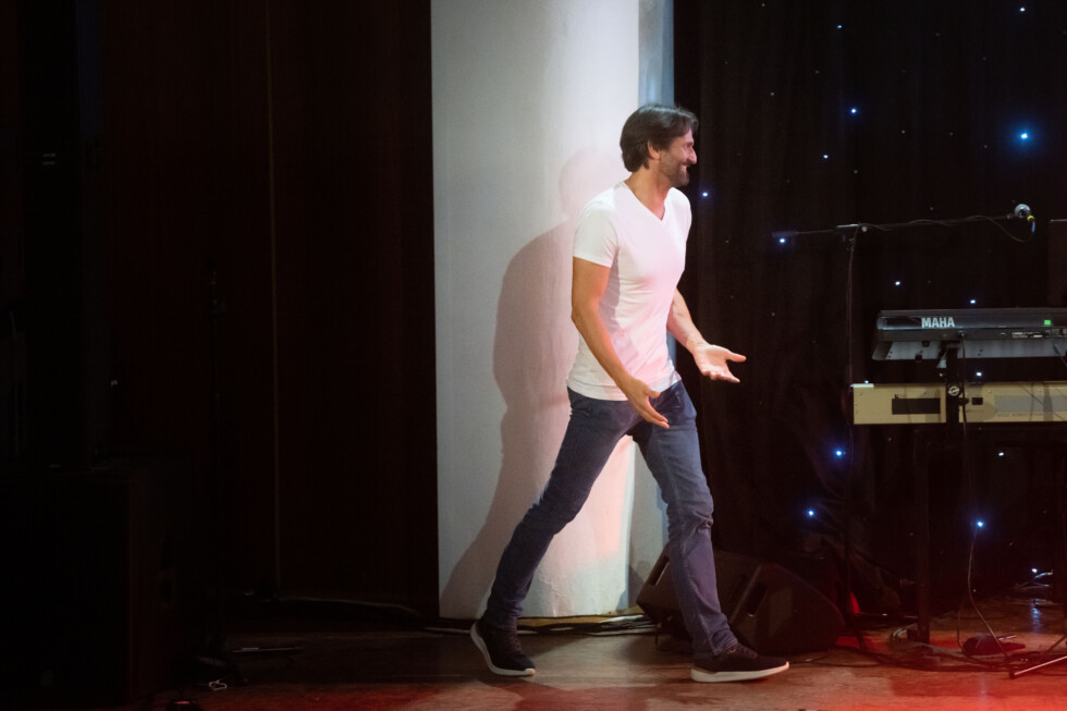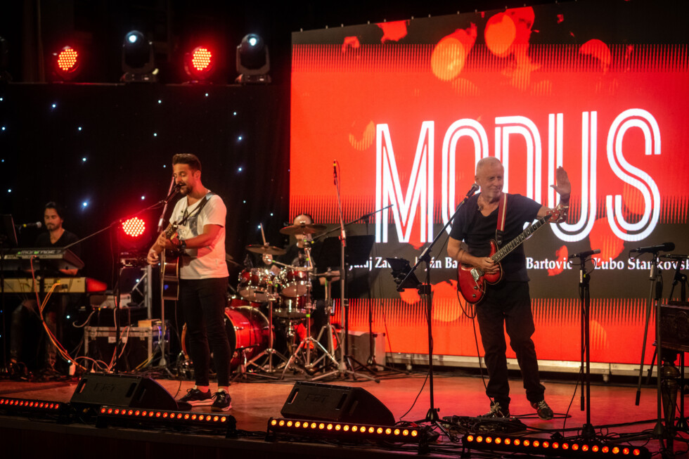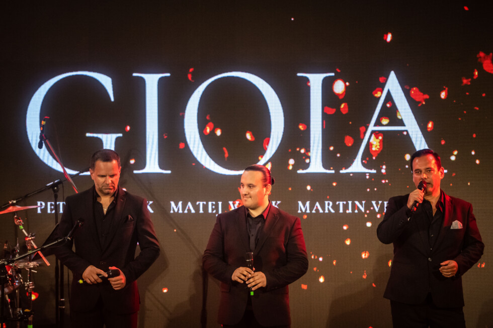 A La Gioia pop-opera triója a Duša című számmal szórakoztatja a rimaszombati kultúrház teli előadótermét. Hamarosan színpadra lép a program fő csillaga: a Smer elnöke, Robert Fico.