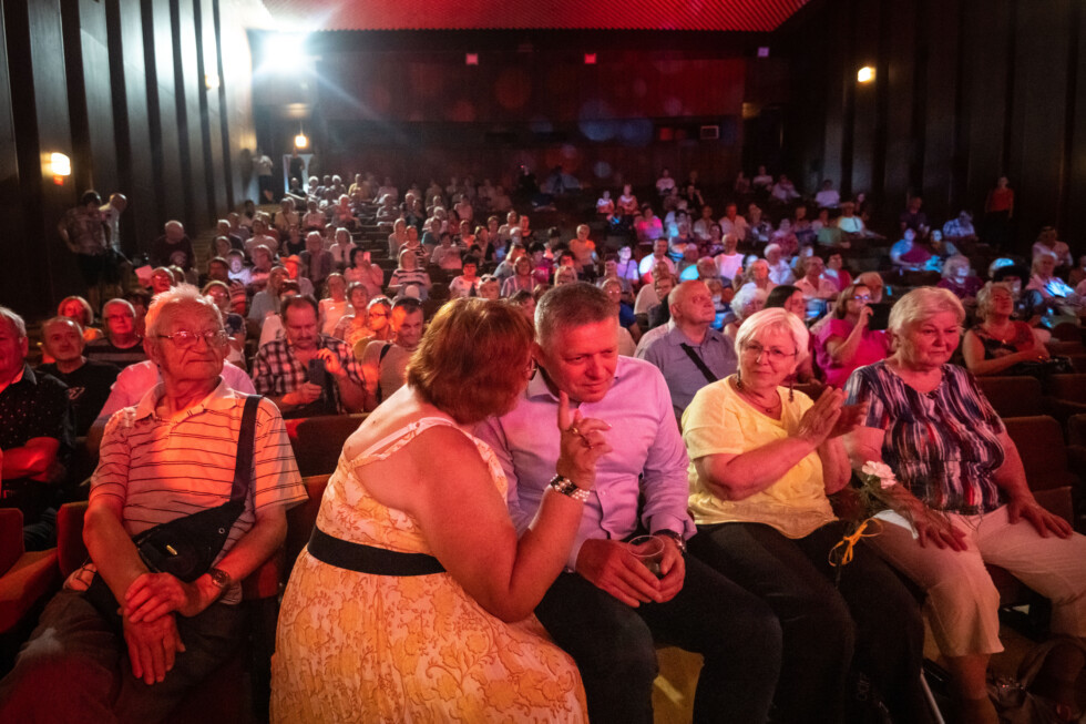 Fico mindjárt a felvezetésben értékelte, hogyan töltötték meg a rimaszombati amfiteátrumot 2021 őszén a pandémia alatt a kormányellenes tüntetésen. A maszk nélküli emberek a sapkáikat dobálták a fejük fölé vele együtt. „Lengették a sapkáikat, hogy kiűzzük őket. Istenemre, mi kiűzzük őket, ne féljenek, ha mind belehúzunk, akkor szeptember 30. után nyomuk sem marad” – mondta most a kultúrházban lévő embereknek, és felharsant a taps. A légkör felforrósodott, majd kifulladt.
