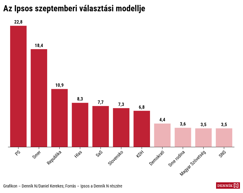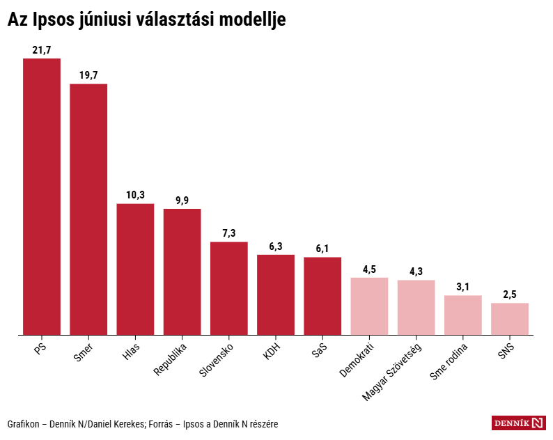A Republika után Andrej Danko Szlovák Nemzeti Pártja (SNS) következik 6,4 százalékkal. Danko már a második felmérésben szerzett 6 százalékos eredményt. A csütörtöki AKO pontosan ugyanennyit mért az SNS-nek.