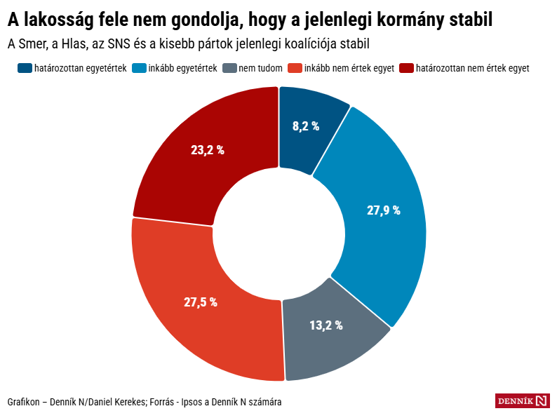 Egy hónappal a választások után a Smer a legnépszerűbb párt, melynek elnöke, Robert Fico a Hlasszal és az SNS-szel alakított új kormánykoalíciót. Fico pártját a megkérdezettek csaknem negyede választaná, 24 százalék.