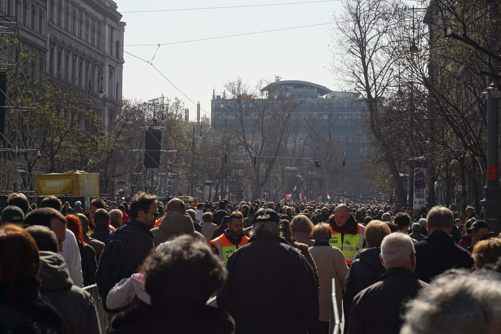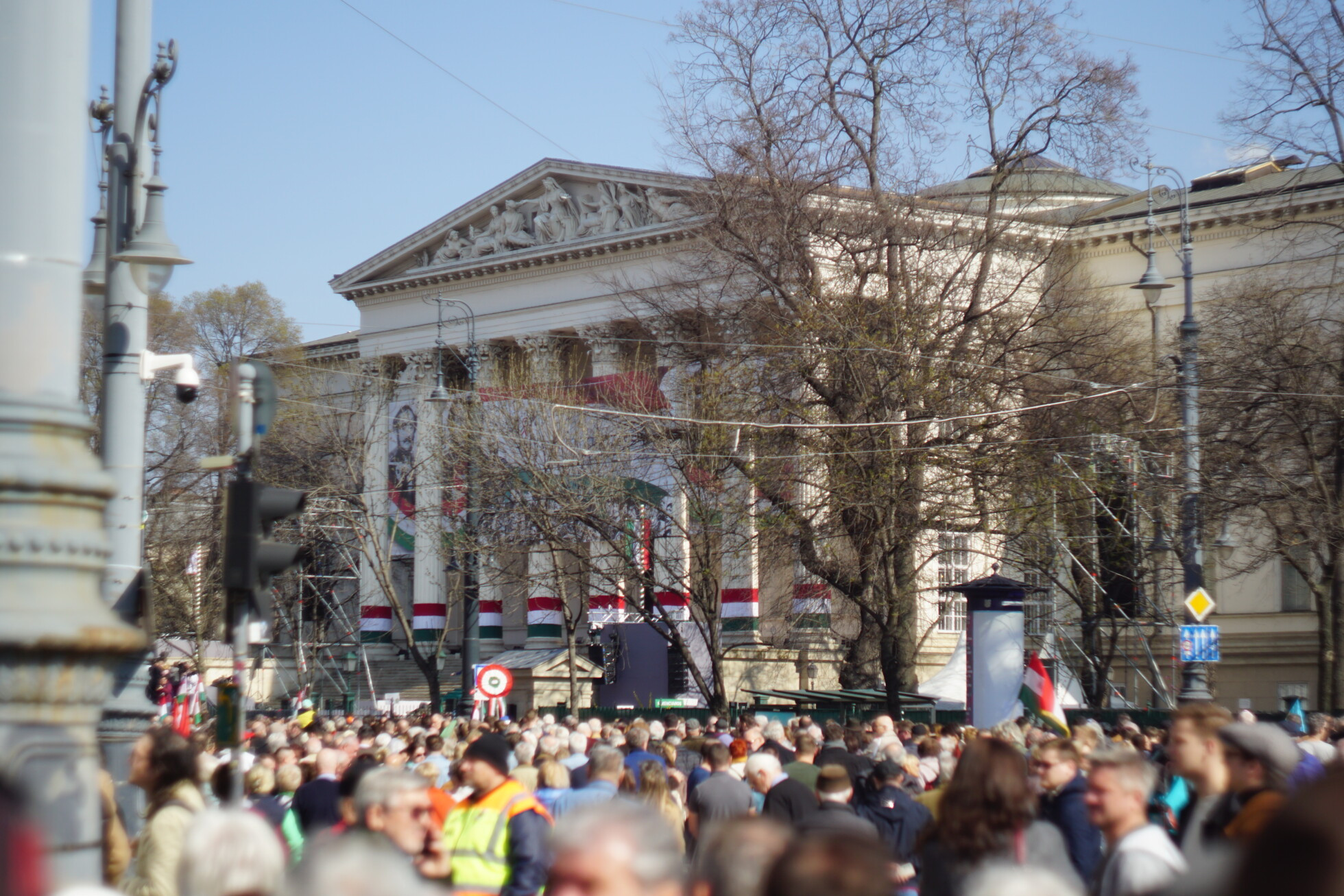„Hé, azt nem viheted be!” – fogja meg a karom egy biztonsági őr és a fényképezőgépemre mutat, amikor Orbán Viktor ünnepi beszédére igyekezve a kordonokhoz érek, amiken keresztül engedik be az embereket a helyszínre, a Nemzeti Múzeumhoz. Mondom, hogy újságíró vagyok, amire azt válaszolja, hogy csak „hivatalos riporterengedéllyel” lehet bemenni az esemény területére, és mutatja, hol tudok távozni.