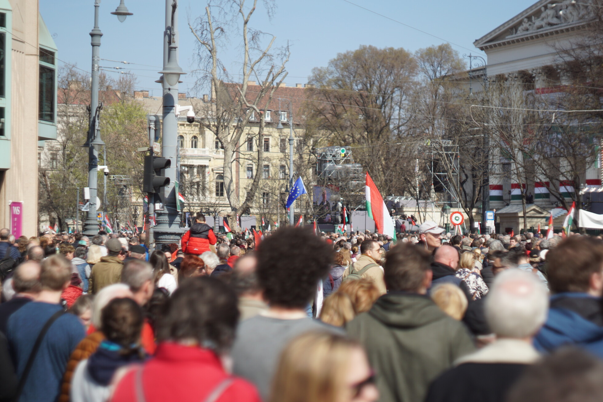 Közben a tér vendéglőinek teraszai megtelnek az Orbán beszédről érkező kokárdás emberekkel: idősek és fiatalok, családok, élvezik az ünnepnapot és a kellemes márciusi meleget.