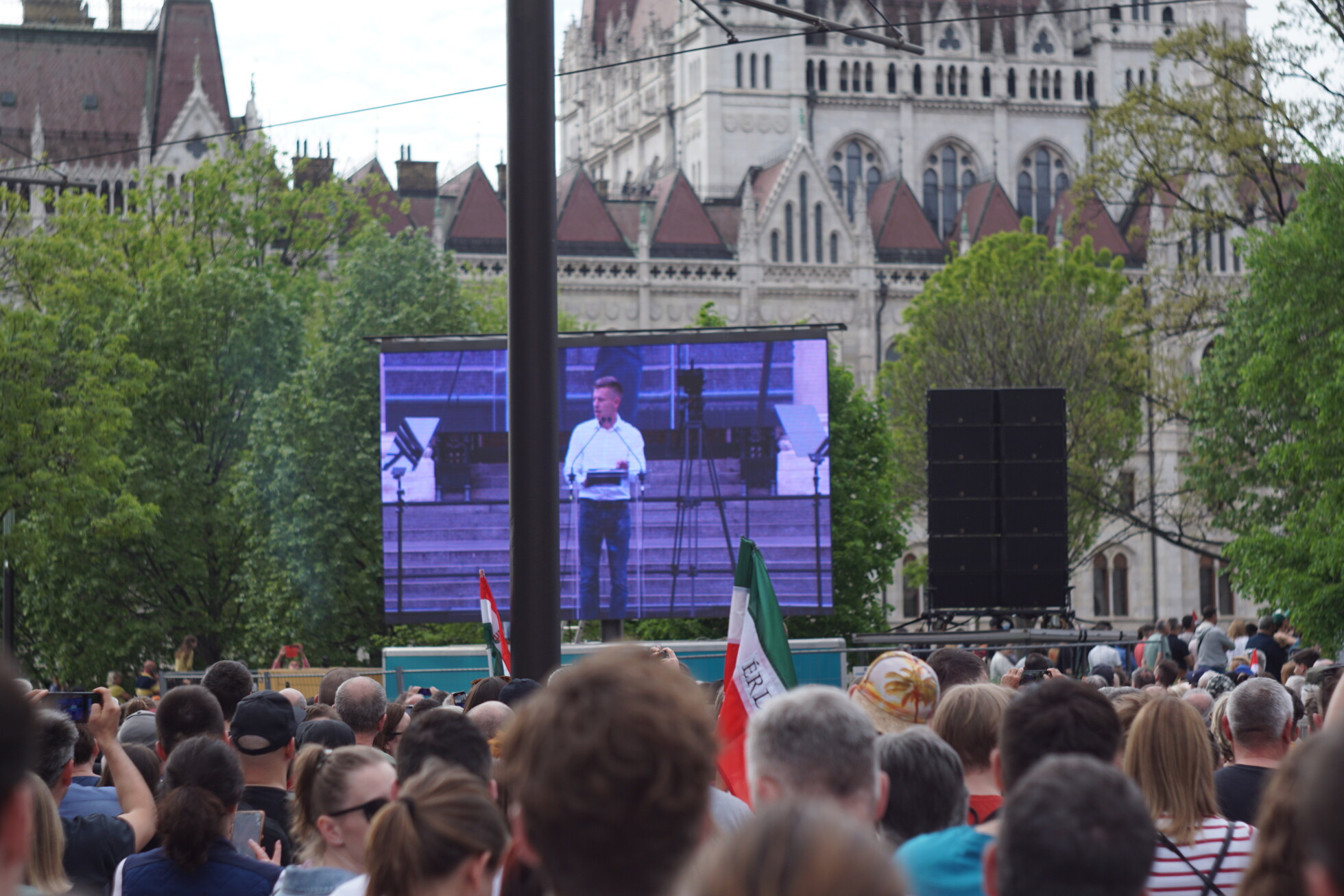 „Azt sejtettük, hogy mit fog mondani, arra voltunk kíváncsiak, mennyien jönnek ki. Elégedettek vagyunk” – mondta egy negyven körüli férfi, amikor arról érdeklődtem, tetszett-e neki Magyar Péter beszéde.