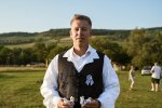 Ebédszünetre futunk be – a kis étterem előtti parkoló pedig tele van helyiekkel és túraruhába öltözött emberekkel. A szomszédos házak kapui előtt is a menet tagjai ücsörögnek – száz-százötven ember biztosan összejött. Minden korosztály képviselteti magát – elvegyülve köztük Magyar Péter stábjának tagjai, akiket az különböztet meg a többiektől, hogy fülhallgató van az egyik fülükben, olyan testőrös.